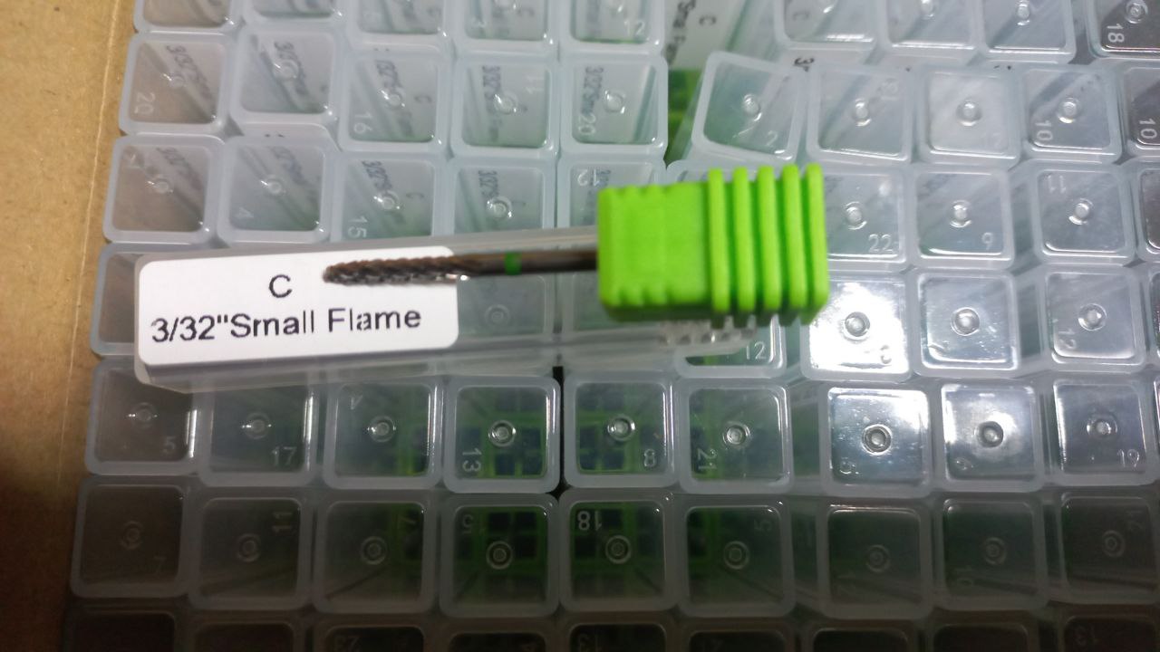 Prima pagină Aparatura Capete freza Bit din metal dur, flacără, brâu verde, C Small Flame