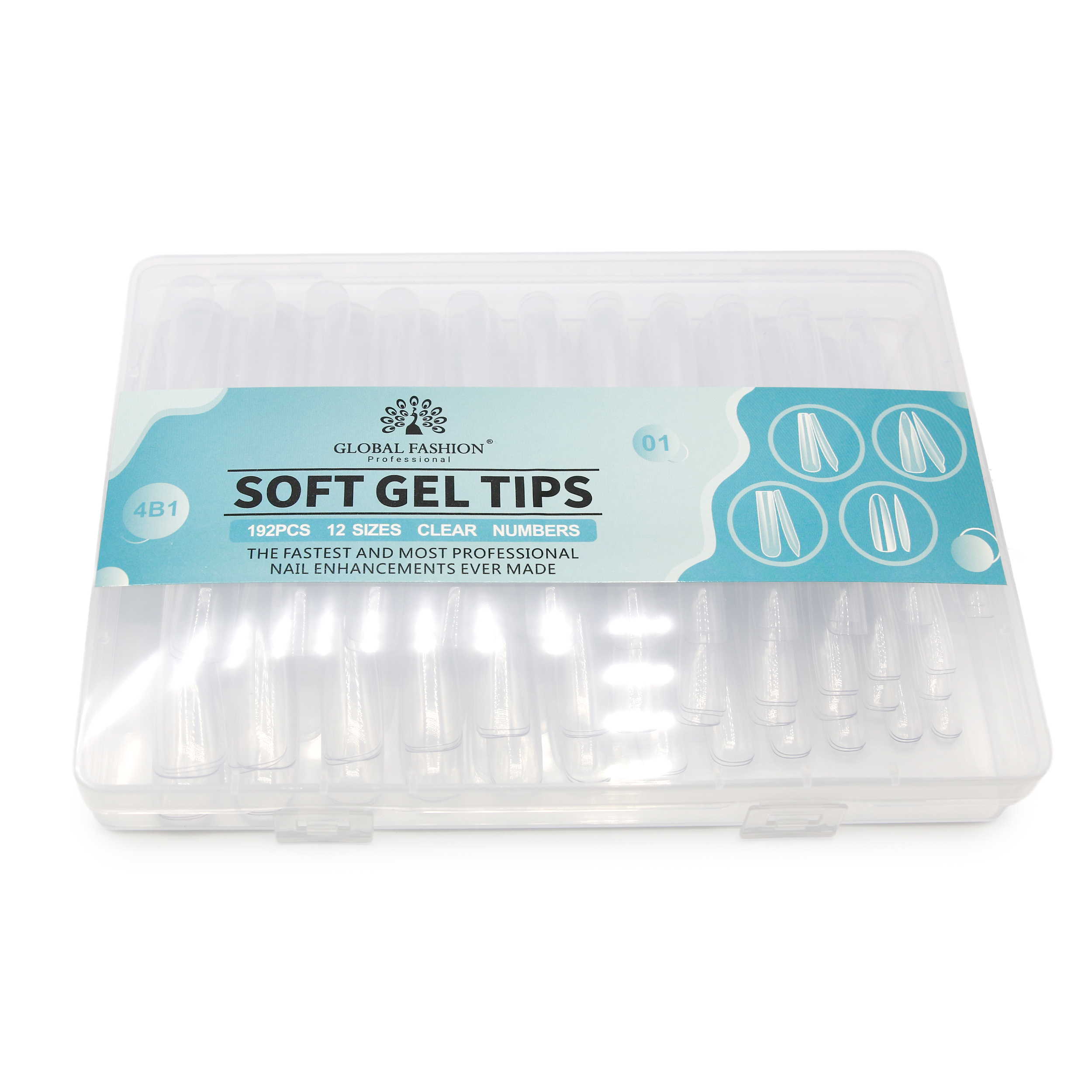 Tipsuri din gel 4in1 Global Fashion, 01, 192 bucăți, 12 dimensiuni – Unghii false perfecte pentru manichiuri de durată!